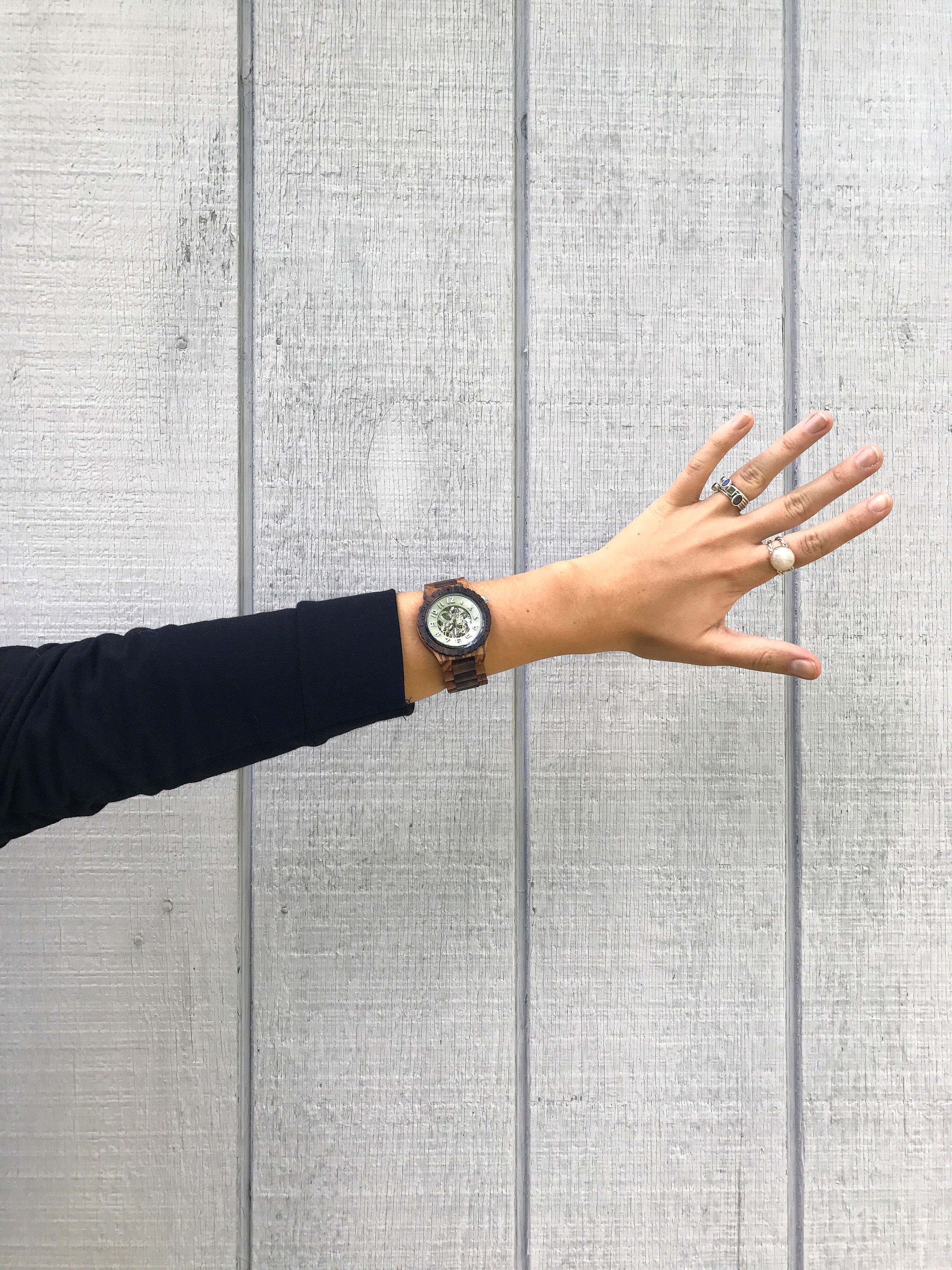 As I briefly mentioned above, the Dover series of JORD’s watches are classified as being a men’s wooden watch, due to their bulkier style and structure. But, that’s exactly why I chose it! By wearing this watch, it takes away the need to wear any other accessories because it speaks for itself. And, a wood watch is seriously such a conversation starter! I can’t tell you how many people have stopped me at work, in a store, and at Chipotle, asking where I got my watch.