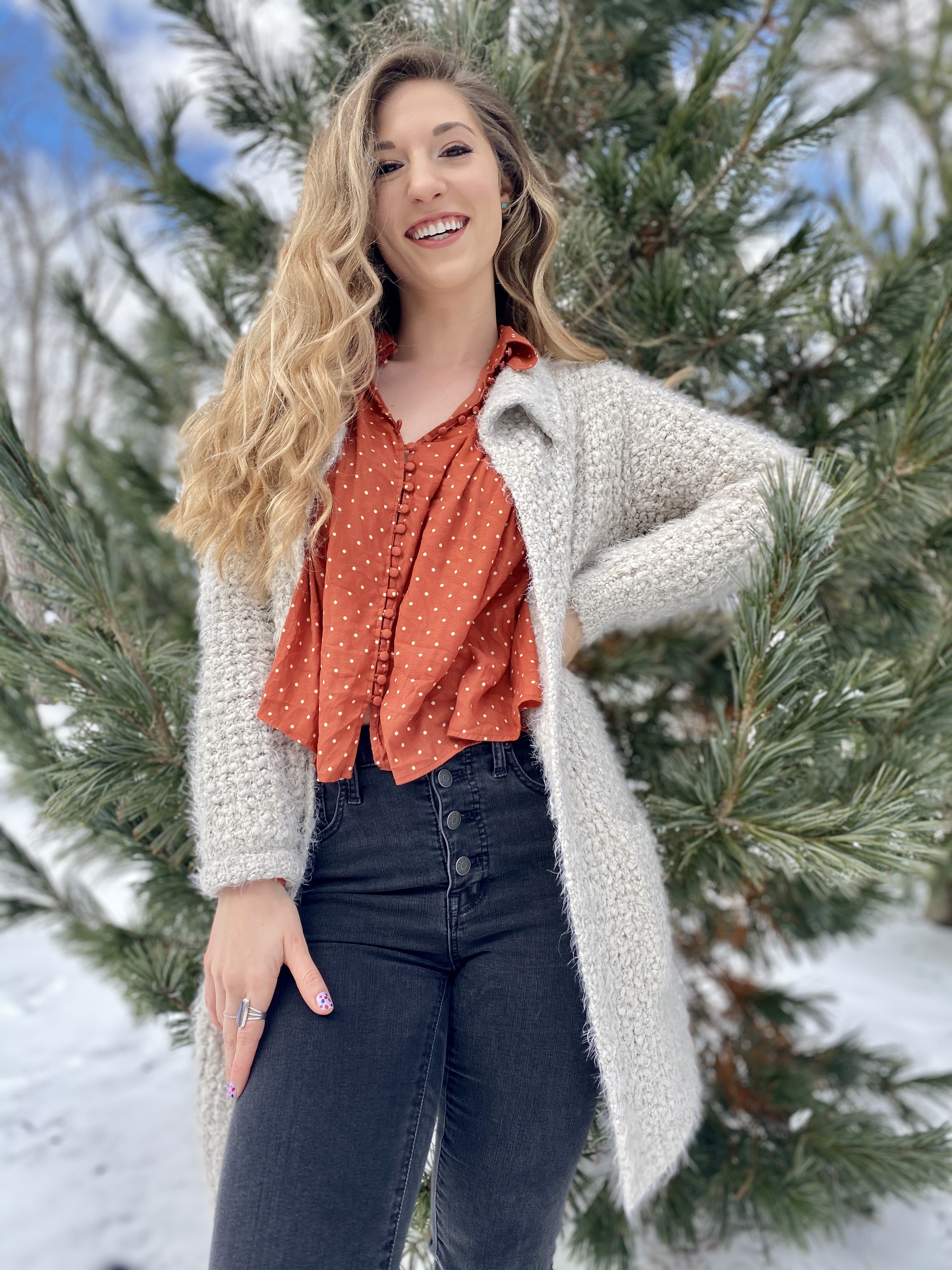 Sweater (BB Dakota), Blouse (Free People from Avalon Exchange), Jeans (Madewell)